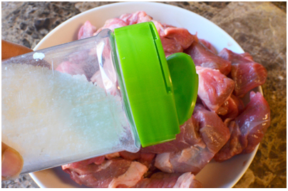 – Ướp thịt bò với một ít muối và tiêu.
